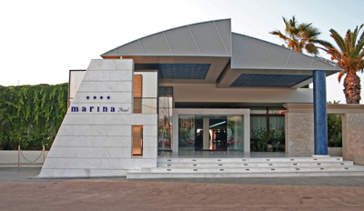Marina Hotel is an 4 Stars hotel ,situated , only 15 Kms from International Airport of Heraklion “Nikos Kazantzakis”, surrounded by large well kept gardens , on the long sandy beach of Gouves .